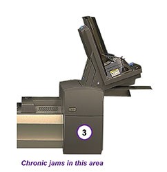 - Guides latéraux de l'alimenteur mal alignés - Les guides servent à maintenir l'alignement du matériel inséré, tandis qu'il est traité par le système. Au fil du temps, les guides peuvent bouger et nuire à l'insertion.
